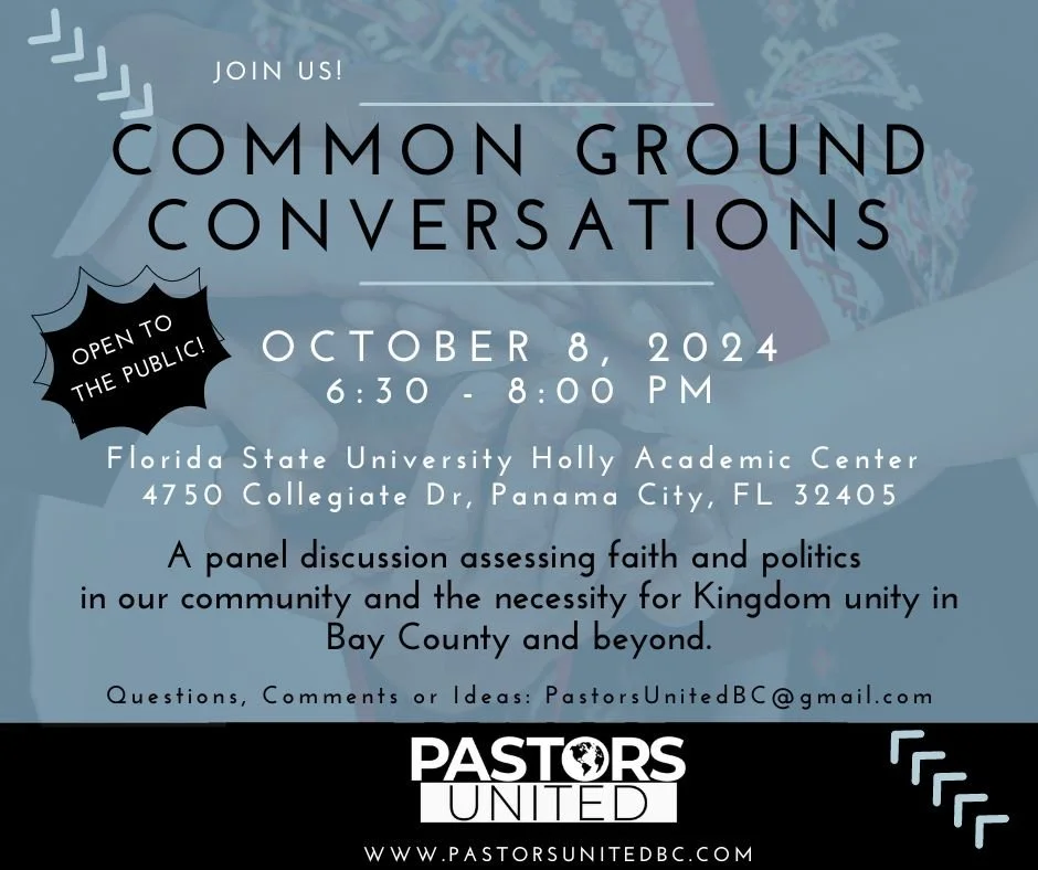 A panel of pastors share the stage in discussing the ways that church leaders and all Christians can be intentional about unity through Christ Jesus. This is a casual event that is open to all Christians and a time of question and answers is offered at the end.